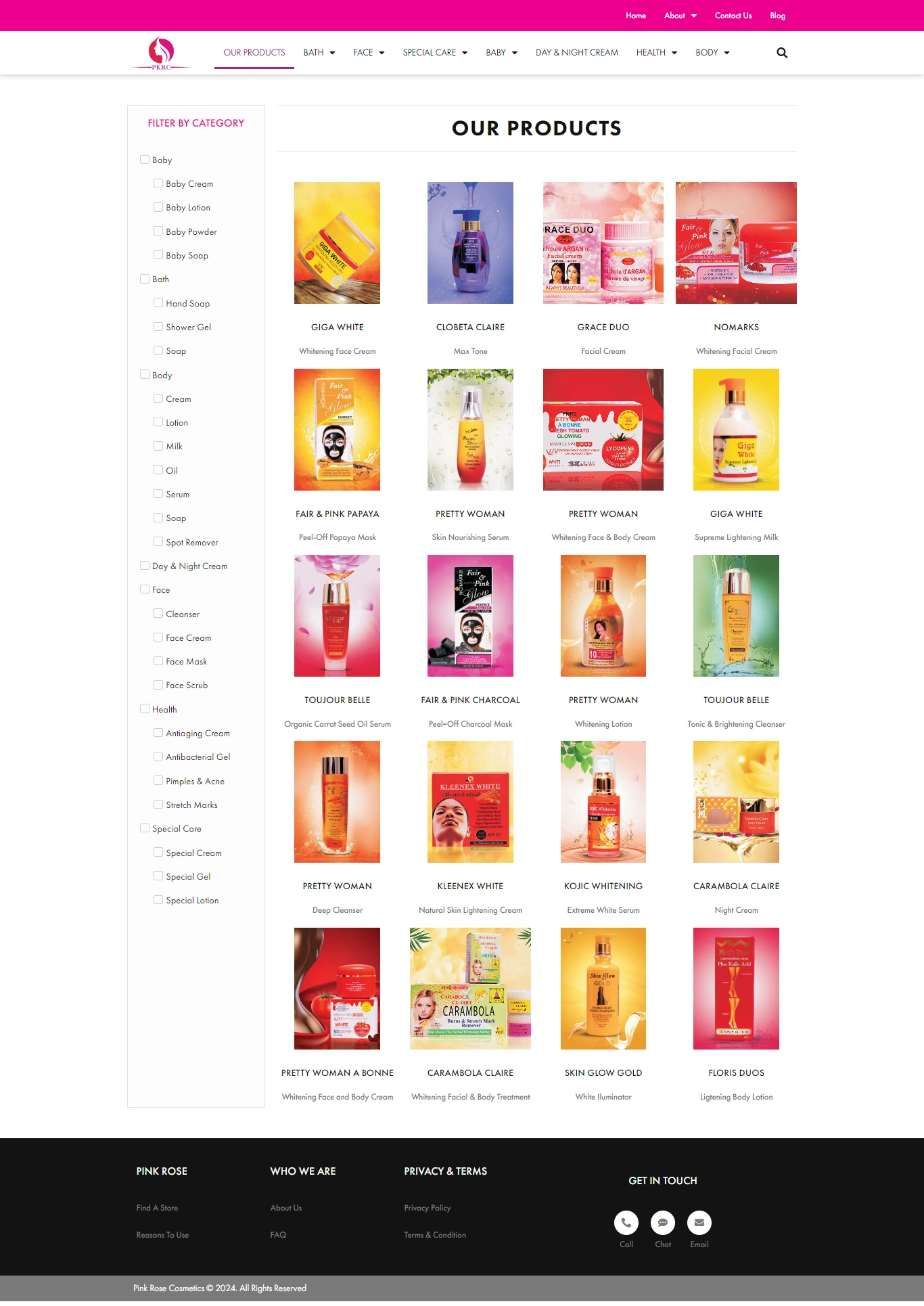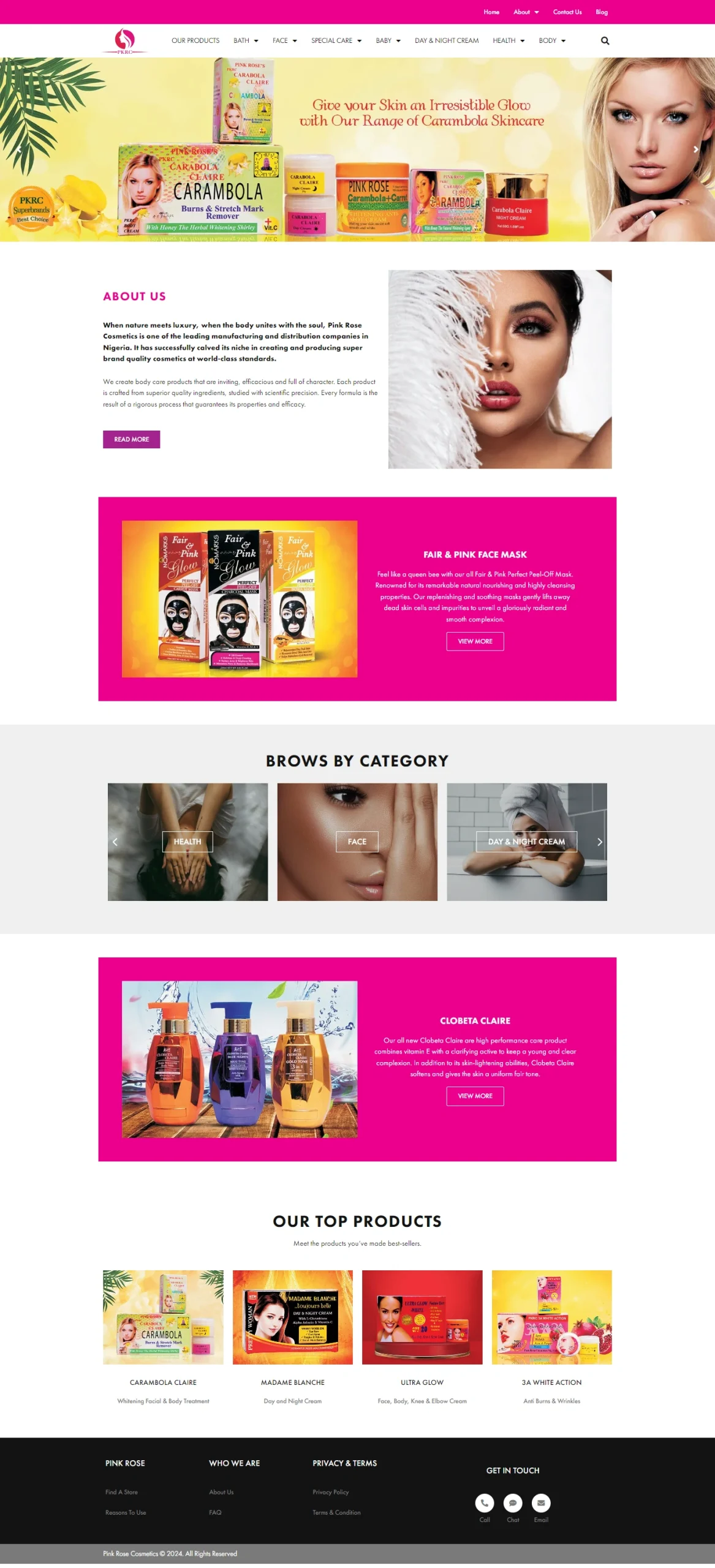 I developed a WordPress website for Pink Rose Cosmetics using Elementor. The site showcases their cosmetic products and features ACF integration, custom CSS, and a custom dashboard, enabling the client to easily upload and manage their products.